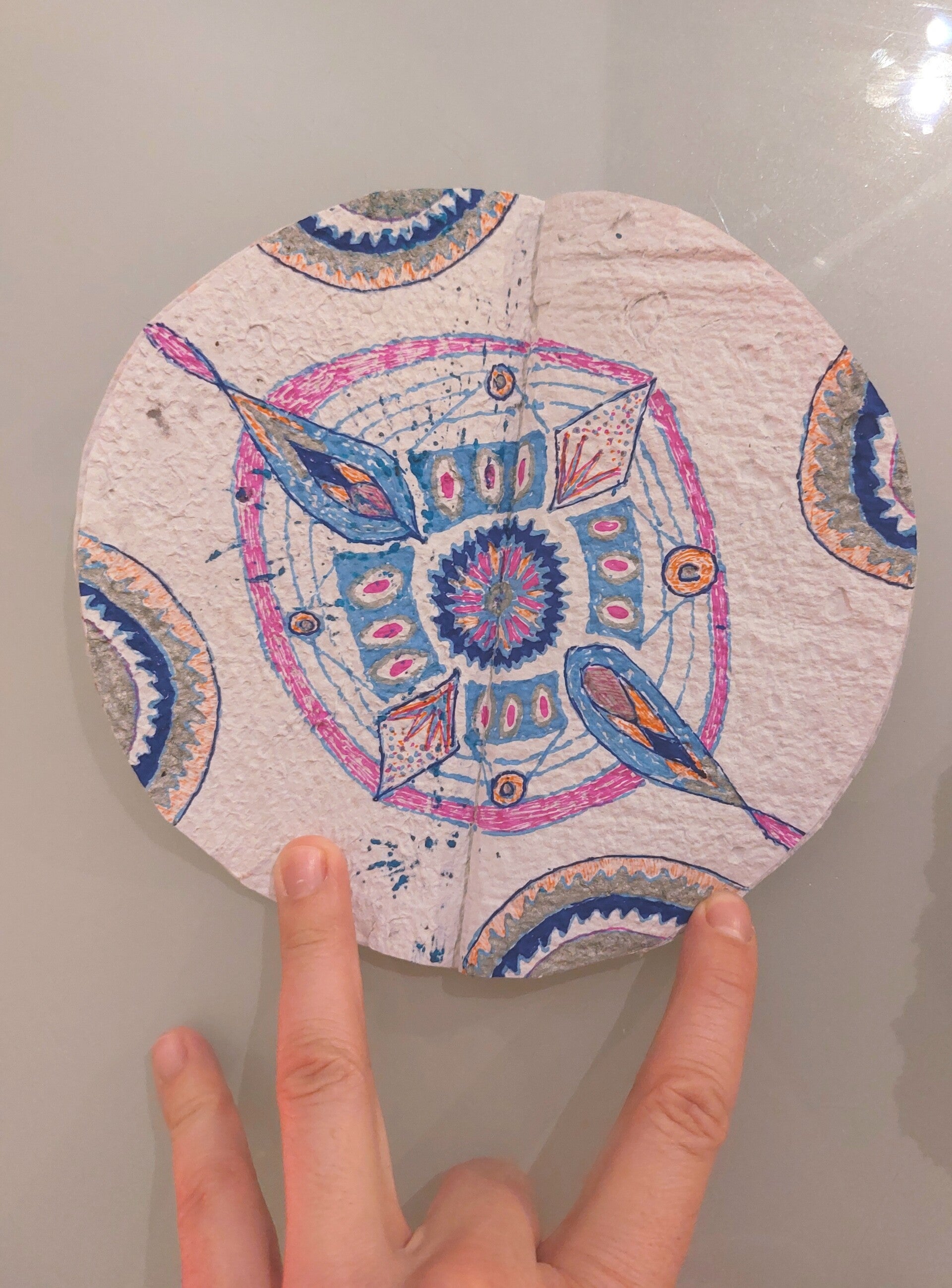 Parfait pour vos mandalas et créations tout en rond, en cercle et en sphères! Ce carnet est réalisé à partir de papier recyclé. Je fais ce papier avec des enveloppes de courrier et il est idéal pour le dessin au feutre, pastels et pour la peinture. Les déchets du découpage sont biensur...recyclés!
